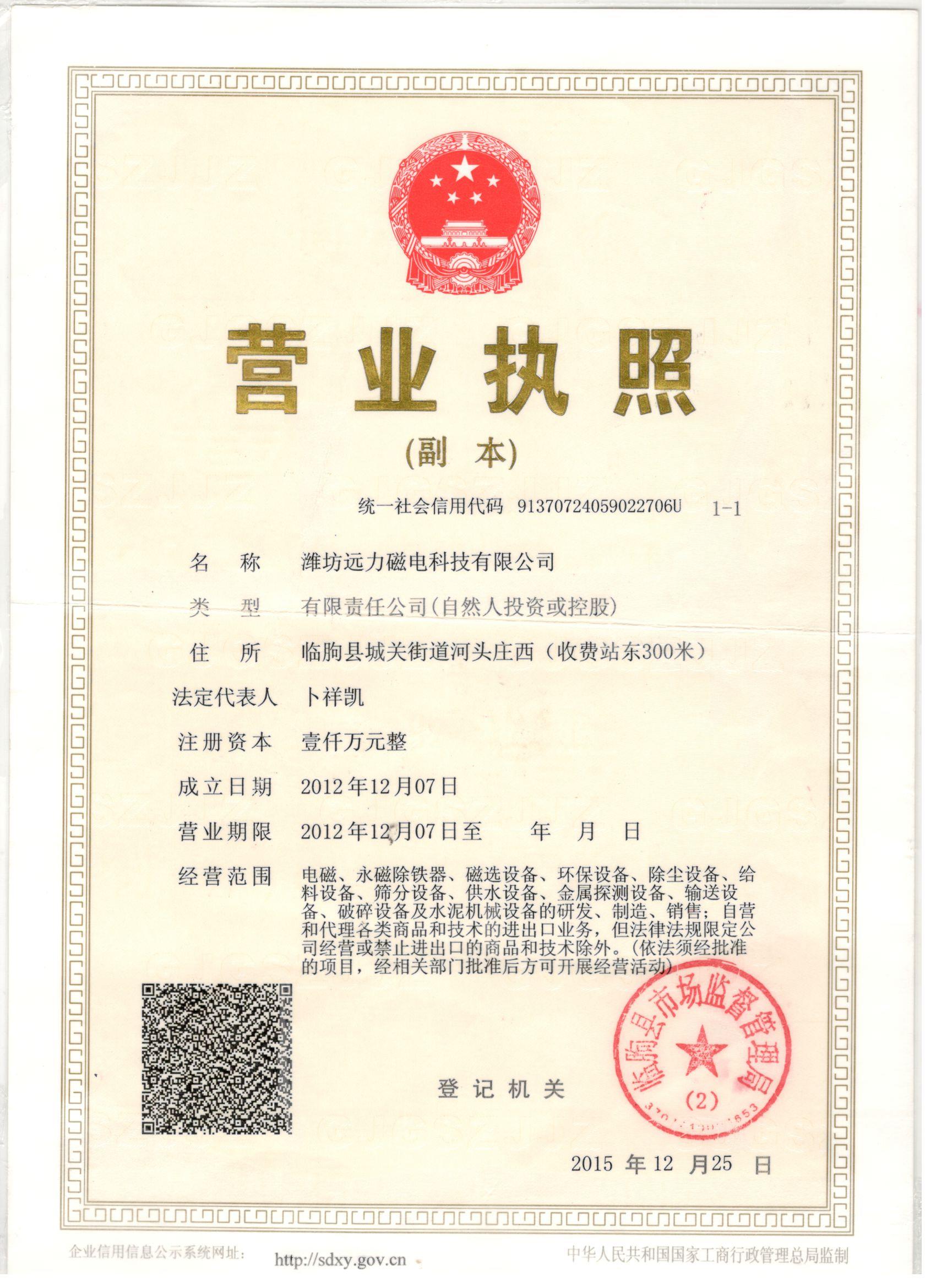 濰坊遠力磁電科技有限公司專業生產除鐵器,電磁除鐵器的廠家,是集永磁除鐵器,永磁滾筒,磁選機,除塵器,尾礦干排科研開發,工程設計,生產安裝,調試服務于一體的磁電設備生產企業。